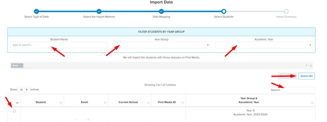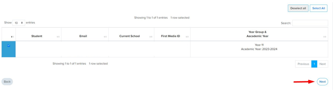 7. Once the students are selected scroll to the bottom of the list and click Next
