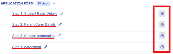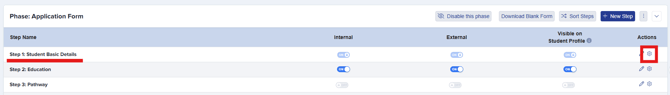 To view the questions within a step, simply click on the step’s name or select the settings cog icon found under the ‘Actions’ column.