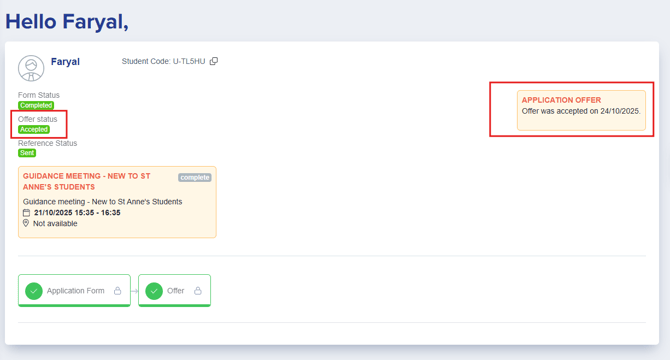 This guide will show you how to check the offer status of a student once you've made an offer to them.