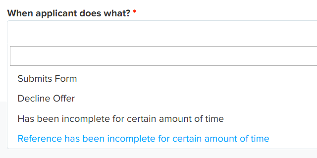 Under "When Applicant does what?" select on the drop down "Reference has been incomplete for certain amount of time".
