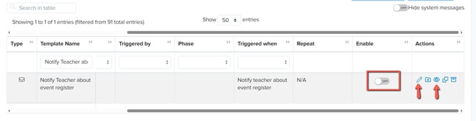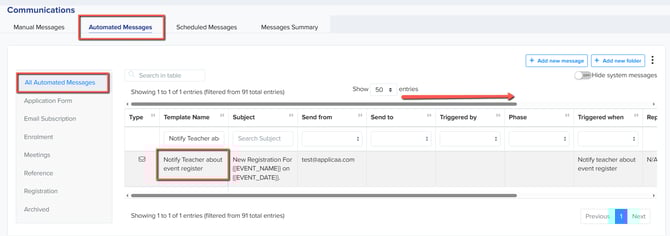 The “Notify Teacher about event register” automated message allows staff members to receive an email whenever a new registration is submitted for an event.