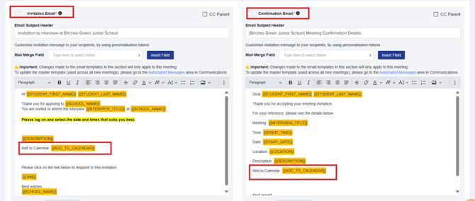 Once you have selected your preferred settings, you will see the relevant Invitation Email & Confirmation Email templates settings which you may customise to your liking.