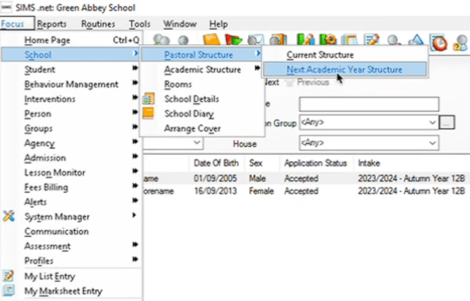 Navigate to Focus > School > Pastoral Structure and then the Next Academic Year Structure.