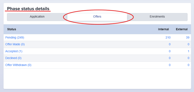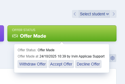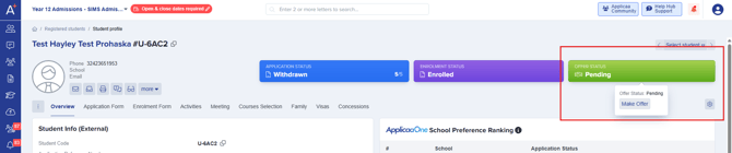 Within the Student profile, you will find the Offer Status tab on the top right of the screen.