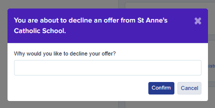 When you change the offer status to "Decline Offer" on behalf of the student, it will then ask you the reason for declining the offer for record tracking.