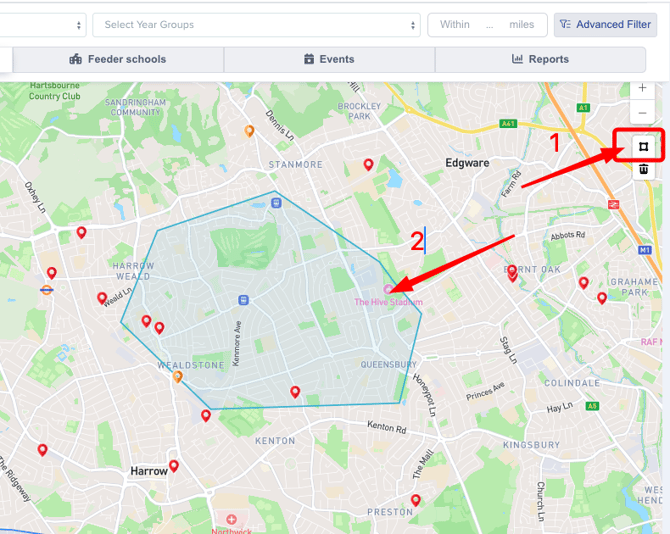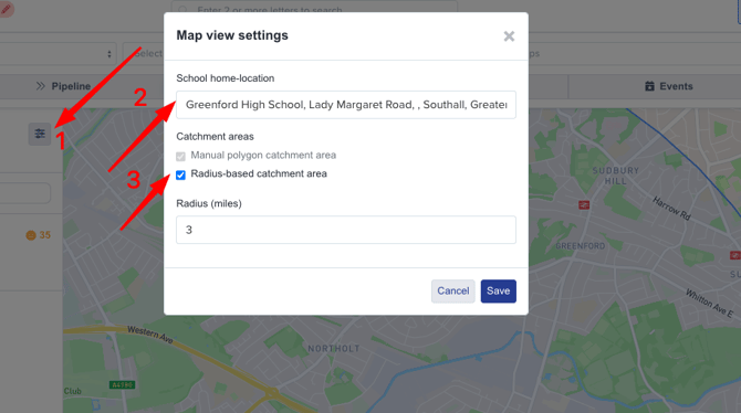 The Map View allows you to visualise the geographic distribution of your applicants relative to your school's location.