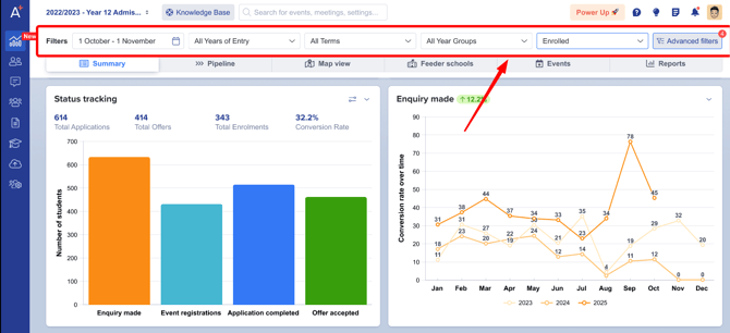 - Verify how well your admissions and marketing pipeline are performing