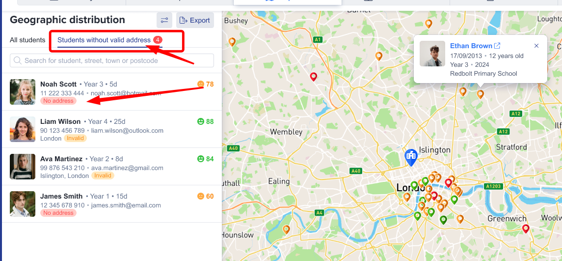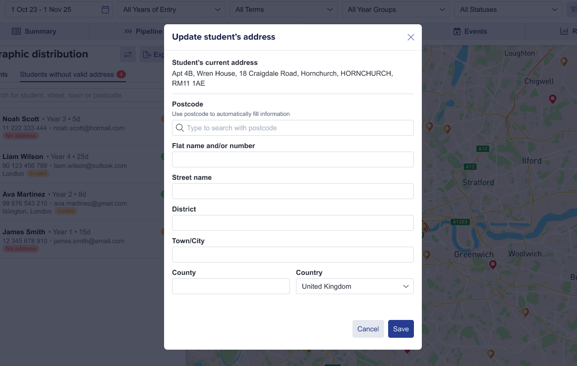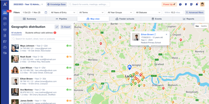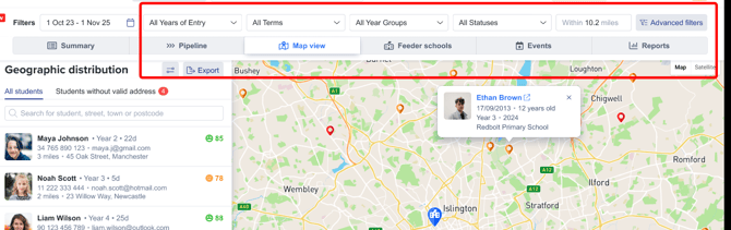 The Map View allows you to visualise the geographic distribution of your applicants relative to your school's location.
