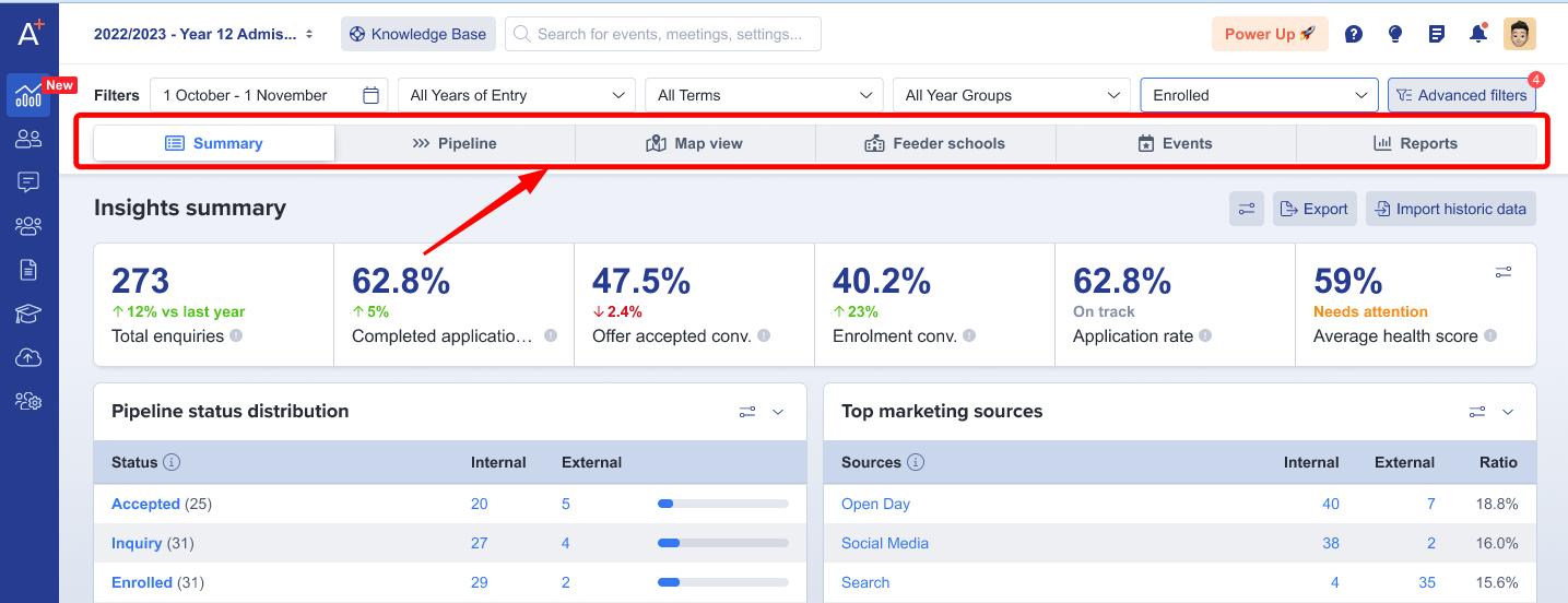 - Verify how well your admissions and marketing pipeline are performing