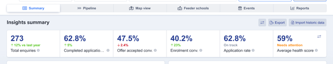 This gives you a high-level view of how many applicants you have at each stage of your admissions process.