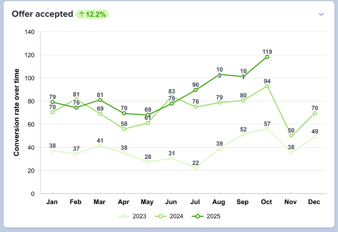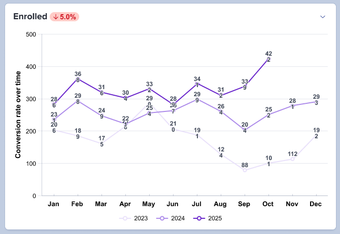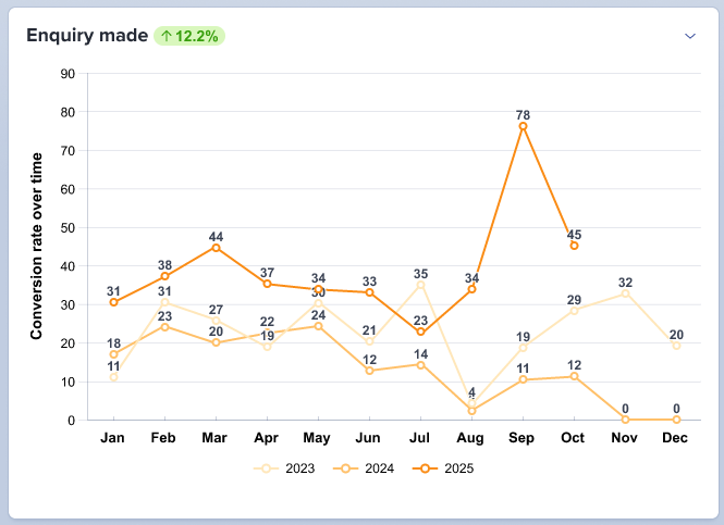 These charts allow you to quickly identify whether you're on track compared to previous years and spot any concerning trends early.