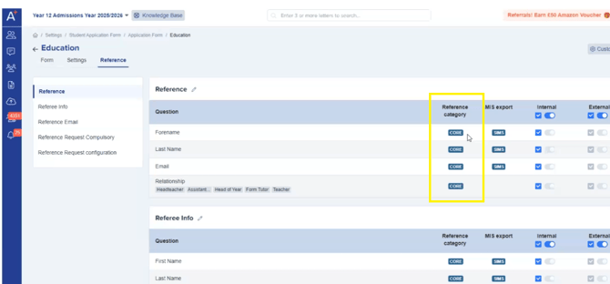 These are essential and mandatory for all references. These typically include basic information such as the student’s name and the referee’s email. These questions cannot be removed from the form but can be reworded according to each school’s preference. The idea is to ensure that vital information is always included, making the system robust and consistent across all schools.