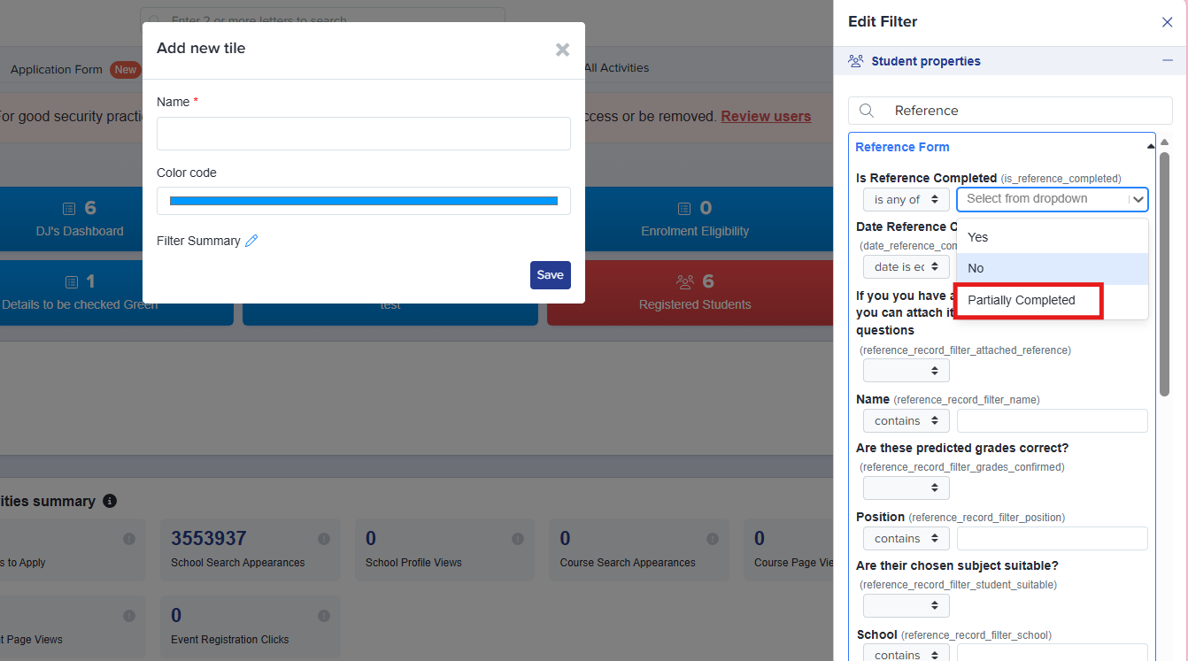 Filtering for 'Partially Completed' references