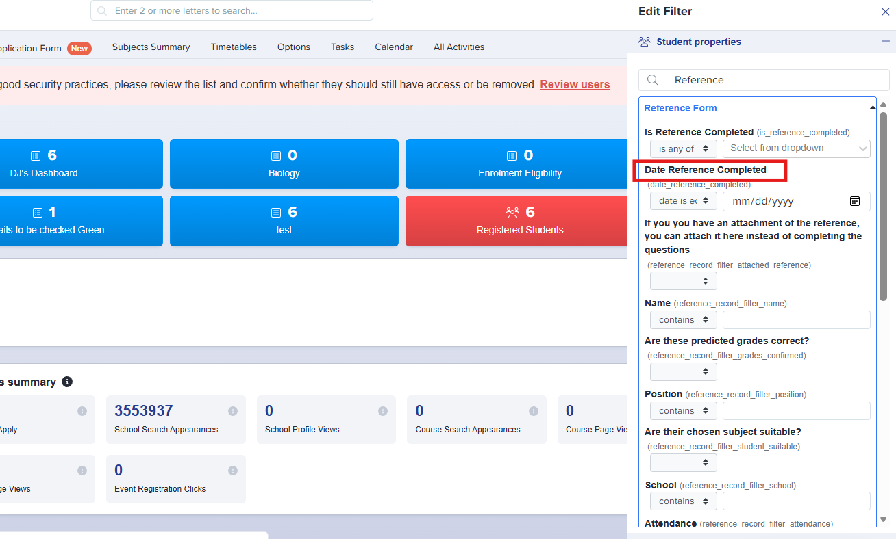 'Date Reference Completed' filter has been added under 'Reference Form Filters' → “Date Reference Completed” filter is added under Reference Form Filters, enabling users to easily narrow down applications based on when their references were completed.