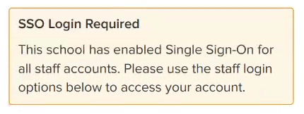 "This school has enabled Single Sign-On for all staff accounts. Please log in by clicking the [Google/Outlook] button below."