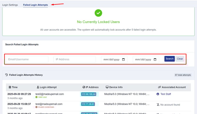 Next to Login Settings is the Failed Login Attempts tab. This allows admins to: