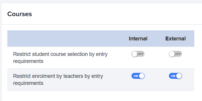Restricting student course selection by entry requirement means that if they don't meet the entry requirements you have specified, the student won't be allowed to choose that particular course.
