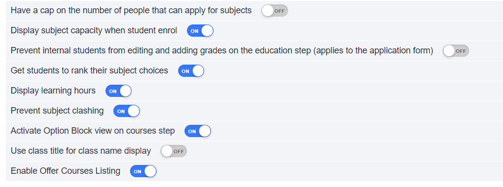 You can also ask applicants to rank their subjects in order of preference when applying, and can also enable them to see the learning hours for each course - this is completely up to you.