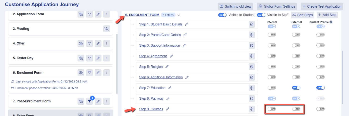 You can test settings out in your own enrolment test system, but this is a visual "what if?" guide to show you what particular settings would look like