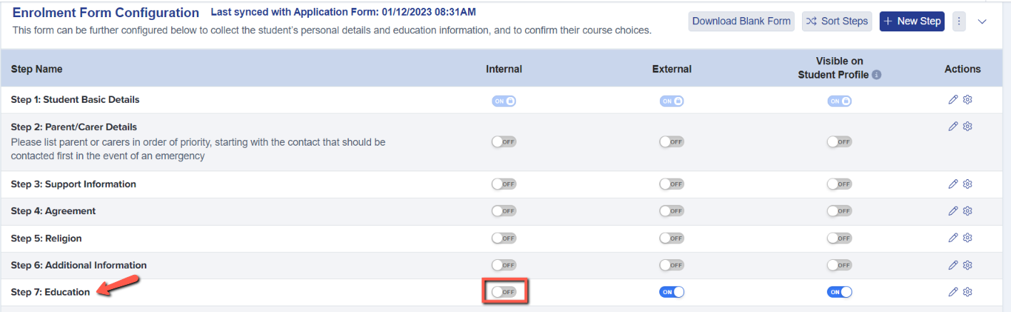 Turn off the Education step for internals. You can do this in settings > application form, or in step 3: Student Process on your Enrolment Navigator.