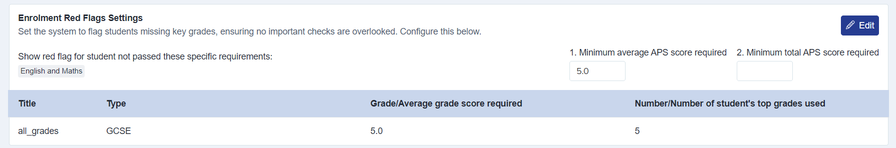 Red flag settings do not prevent an applicant from proceeding with their enrolment; they are there as a visual prompt for you to see any applicant who has not met one of your general or specific entry requirements - often, schools use this to show students who have not achieved grade 4 in their English Language and Maths qualifications.