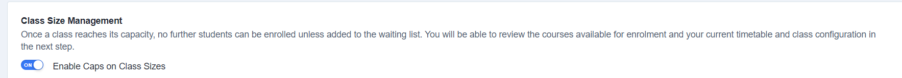 If you try to enrol anyone else into that class, you will see this message, and you can either increase the cap size, or add the student to the waiting list for that class: