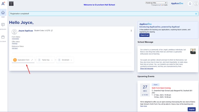 Students applying externally will be directed to complete their registration via ApplicaaOne.