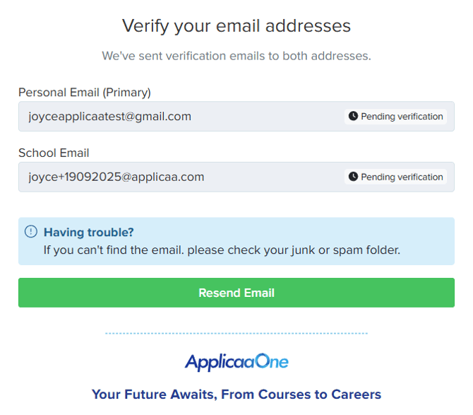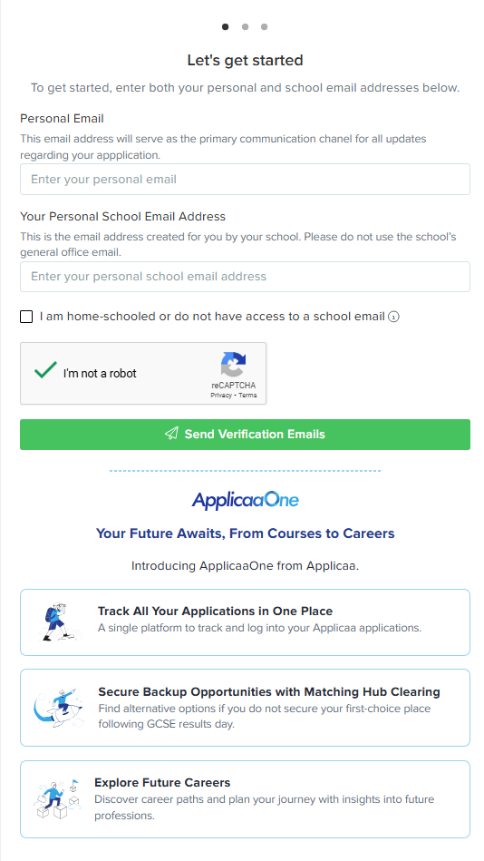 External students will be asked to provide and verify their personal and school email addresses.