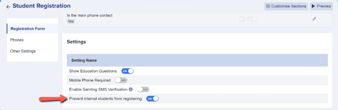 The setting below will be enforced (set to ‘ON’ and grayed out) in your Student Registration Settings (settings > application form > student registration).